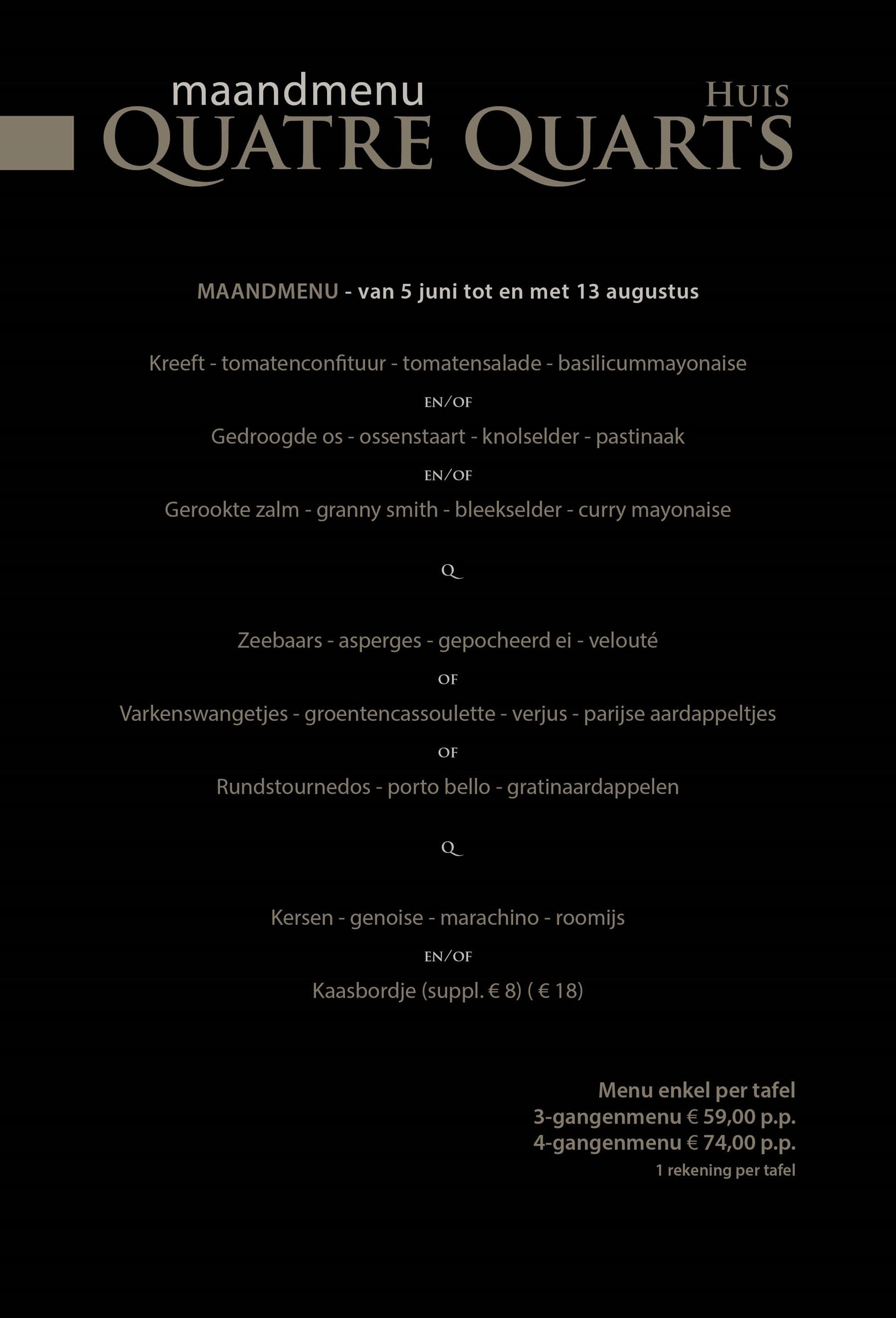 Deze website maakt gebruik van cookies De website van Huis Quatre Quarts gebruikt functionele cookies. In het geval van het analyseren van websiteverkeer of advertenties, worden ook cookies gebruikt voor het delen van informatie, over uw gebruik van onze site, met onze analysepartners, sociale media en advertentiepartners, die deze kunnen combineren met andere informatie die u aan hen heeft verstrekt of die zij hebben verzameld op basis van uw gebruik van hun diensten.